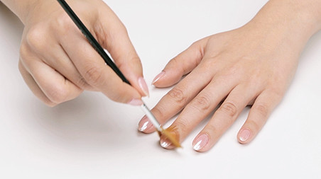 Then immediately use the included applicator brush to apply the pearl powder onto your freshly-cured manicure. Use good pressure to rub the powder until it's completely smooth and shiny.